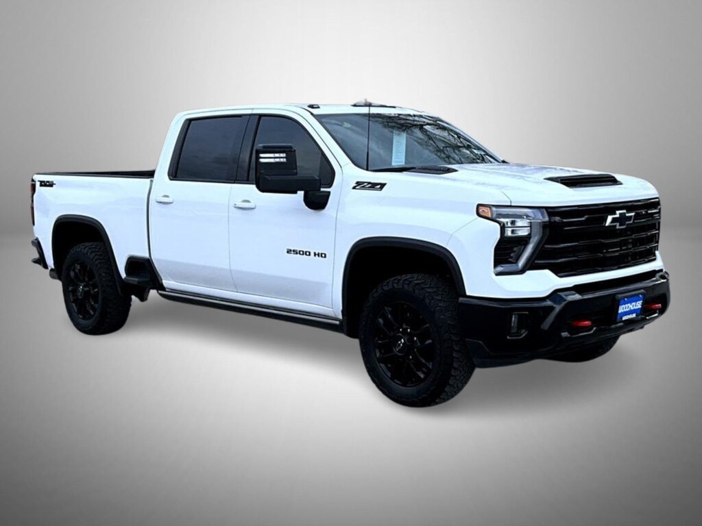 Summit White 2025 Chevrolet Silverado 2500HD LTZ 4WD 10-Speed Automatic 6.6L V8 10-Speed Automatic, 4WD, Jet Black Leather, 10-Way Power Driver Seat Adjuster with Lumbar, 10-Way Power Passenger Seat Adjuster with Lumbar, 120-Volt Bed Mounted Power Outlet, 120-Volt Interior Power Outlet, 15" Diagonal Multicolor Head-Up Display, 170 Amp Alternator, 1st and 2nd Row All-Weather Floor Liners, 2 Charge/Data USB Ports Inside Center Console, 220 Amp Alternator, 4-Wheel Disc Brakes, 6 Speakers, 6-Speaker Audio System, 720 Cold-Cranking Amps Heavy-Duty Battery, ABS brakes, Adaptive Cruise Control, Air Conditioning, Alloy wheels, AM/FM radio: SiriusXM with 360L, Apple CarPlay/Android Auto, Auto High-beam Headlights, Auto-dimming door mirrors, Auto-Dimming Inside Rear-View Mirror, Auto-dimming Rear-View mirror, Automatic temperature control, Bed View Camera with Two Trailer Camera Provisions, Black Chevytec Spray-on Bedliner, Black Grille Bar with Chevy Black Bow Tie, Bluetooth® For Phone, Body-Color Door Handles, Body-Color Front Bumper, Body-Color Rear Bumper, BOSE Premium 7-Speaker Sound System, Brake assist, Bumpers: chrome, Chevrolet Connected Access Capable, Chrome Door Handles, Chrome Mirror Caps, Color-Keyed Carpeting Floor Covering, Compass, Deep-Tinted Glass, Delay-off headlights, Driver door bin, Driver Memory, Driver vanity mirror, Dual front impact airbags, Dual front side impact airbags, Durabed Pickup Bed, Electric Rear-Window Defogger, Electronic Cruise Control with Set and Resume Speed, Electronic Stability Control, Emergency communication system: OnStar, Engine Block Heater, Exhaust Brake, EZ Lift Power Lock and Release Tailgate, Floor-Mounted Center Console, Front 40/20/40 Split-Bench Seats with Lockable Storage, Front anti-roll bar, Front Bucket Seats, Front Center Armrest w/Storage, Front dual zone A/C, Front fog lights, Front Frame-Mounted Red Recovery Hooks, Front LED Fog Lamps, Front License Plate Kit, Front Rain-Sensing Wipers, Front reading lights, Front Rubberized Vinyl Floor Mats, Front wheel independent suspension, Fully automatic headlights, Gooseneck/5th Wheel Prep Package, HD Rear Vision Camera, HD Surround Vision, Heated 2nd Row Outboard Seats, Heated door mirrors, Heated Driver and Front Outboard Passenger Seating, Heated front seats, Heated Steering Wheel, Heated steering wheel, High Gloss Black Mirror Caps, Hill Descent Control, Hitch Guidance with Hitch View, Illuminated entry, in-Vehicle Trailering App System, Keyless Open and Start, LED Cargo Area Lighting, LED Smoked Amber Roof Marker Lamps, Low tire pressure warning, LTZ Convenience Package, LTZ Convenience Package II, LTZ Plus Package, Manual Tilt and Telescoping Steering Column, Memory seat, Multi-Flex Tailgate, Occupant sensing airbag, Off-Road Suspension, OnStar Services Capable, Outside temperature display, Overhead airbag, Overhead console, Panic alarm, Passenger door bin, Passenger vanity mirror, Perforated Leather-Appointed Front Outboard Seat Trim, Power Door Locks, Power door mirrors, Power driver seat, Power Front Windows with Driver Express Up/Down, Power Front Windows with Passenger Express Up/Down, Power passenger seat, Power Rear Windows with Express Down, Power Sliding Rear Window with Defogger, Power steering, Power Sunroof, Power windows, Power-Retractable Assist Steps, Preferred Equipment Group 1LZ, Premium audio system: Chevrolet Infotainment 3 Premium, Push Button Start, Radio: Chevrolet Infotainment 3 Premium System, Rain sensing wipers, Rear Camera Mirror, Rear Cross Traffic Alert, Rear reading lights, Rear Rubberized Vinyl Floor Mats, Rear seat center armrest, Rear step bumper, Rear Wheelhouse Liners, Rear window defroster, Remote keyless entry, Remote Vehicle Starter System, Safety Alert Seat, Safety Package, Security system, SiriusXM with 360L Trial Subscription, Speed control, Speed-sensing steering, Split folding rear seat, Standard Tailgate, Steering Wheel Audio Controls, Steering wheel mounted audio controls, Suspensi