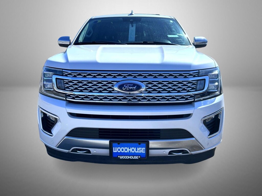 White Platinum 2019 Ford Expedition Platinum 4WD 10-Speed Automatic EcoBoost 3.5L V6 GTDi DOHC 24V Twin Turbocharged 4WD, 12 Speakers, 22" Polished Aluminum Wheels, 2nd Row Bucket Seats, 3.31 Axle Ratio, 3rd row seats: split-bench, 4-Wheel Disc Brakes, ABS brakes, Adaptive suspension, Adjustable pedals, Air Conditioning, Alloy wheels, AM/FM radio: SiriusXM, AppLink/Apple CarPlay and Android Auto, Auto High-beam Headlights, Auto-dimming door mirrors, Auto-dimming Rear-View mirror, Automatic temperature control, Brake assist, Bumpers: body-color, Compass, Delay-off headlights, Driver door bin, Driver vanity mirror, Dual front impact airbags, Dual front side impact airbags, Electronic Stability Control, Emergency communication system: SYNC 3 911 Assist, Equipment Group 600A, Exterior Parking Camera Rear, Four wheel independent suspension, Front anti-roll bar, Front Bucket Seats, Front Center Armrest, Front dual zone A/C, Front fog lights, Front reading lights, Fully automatic headlights, Garage door transmitter, Genuine wood console insert, Genuine wood dashboard insert, Genuine wood door panel insert, Heated & Cooled Perforated Leather Fr Bucket Seats, Heated door mirrors, Heated front seats, Heated rear seats, Heated steering wheel, Illuminated entry, Lane Departure Warning System, Leather steering wheel, Low tire pressure warning, Memory seat, Navigation System, Occupant sensing airbag, Outside temperature display, Overhead airbag, Overhead console, Panic alarm, Passenger door bin, Passenger vanity mirror, Pedal memory, Power door mirrors, Power driver seat, Power Liftgate, Power moonroof, Power passenger seat, Power steering, Power windows, Radio data system, Radio: B&O Sound System by Bang & Olufsen, Rain sensing wipers, Rear air conditioning, Rear anti-roll bar, Rear audio controls, Rear reading lights, Rear window defroster, Rear window wiper, Reclining 3rd row seat, Remote keyless entry, Roof rack, Security system, SiriusXM Satellite Radio, Speed control, Speed-sensing steering, Speed-Sensitive Wipers, Split folding rear seat, Steering wheel mounted audio controls, SYNC 3 Communications & Entertainment System, Tachometer, Telescoping steering wheel, Tilt steering wheel, Traction control, Trip computer, Turn signal indicator mirrors, Variably intermittent wipers, Ventilated front seats, Voltmeter, 4WD.
