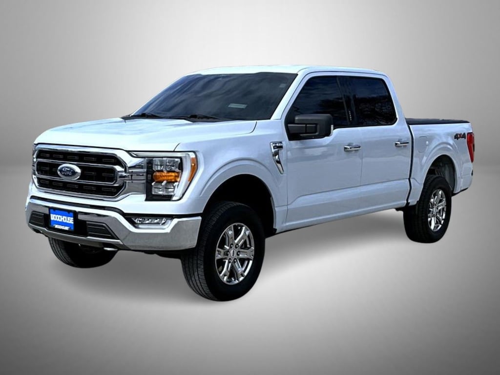White 2021 Ford F-150 XLT 4WD 10-Speed Automatic 3.5L 6 cylinder 4WD, 10-Way Power Driver & Passenger Seats, 2-Bar Style Grille w/Chrome 2 Minor Bars, 4-Wheel Disc Brakes, 6 Speakers, 8" Productivity Screen in Instrument Cluster, ABS brakes, Air Conditioning, Alloy wheels, AM/FM radio, Auto High-beam Headlights, Auto-Dimming Rear-View Mirror, Brake assist, Bumpers: chrome, Chrome Door & Tailgate Handles w/Body-Color Bezel, Chrome Single-Tip Exhaust, Chrome Step Bars, Class IV Trailer Hitch Receiver, Cloth 40/20/40 Front Seat, Compass, Delay-off headlights, Driver door bin, Driver vanity mirror, Dual front impact airbags, Dual front side impact airbags, Dual Zone Automatic Temperature Control, Electronic Stability Control, Emergency communication system: SYNC 4 911 Assist, Equipment Group 302A High, Extended Range 36 Gallon Fuel Tank, Exterior Parking Camera Rear, Front anti-roll bar, Front Center Armrest w/Storage, Front fog lights, Front reading lights, Front wheel independent suspension, Fully automatic headlights, GVWR: 6,470 lbs Payload Package, Heated door mirrors, Heated Front Seats, Illuminated entry, Integrated Trailer Brake Controller, Intelligent Access w/Push Button Start, Leather-Wrapped Steering Wheel, LED Box Lighting w/Zone Lighting, LED Reflector Headlamps, LED Sideview Mirror Spotlights, Low tire pressure warning, Occupant sensing airbag, Onboard 400W Outlet, Outside temperature display, Overhead airbag, Overhead console, Panic alarm, Passenger door bin, Passenger vanity mirror, Power door mirrors, Power Glass Heated Sideview Mirrors, Power steering, Power windows, Pro Trailer Backup Assist, Radio data system, Radio: AM/FM SiriusXM w/360L, Radio: AM/FM Stereo w/6 Speakers, Rear reading lights, Rear step bumper, Rear Under-Seat Storage, Rear window defroster, Remote keyless entry, Remote Start System w/Remote Tailgate Release, SecuriCode Drivers Side Keyless-Entry Keypad, Security system, Speed control, Speed-sensing steering, Split folding rear seat, Steering wheel mounted audio controls, SYNC 4, SYNC 4 w/Enhanced Voice Recognition, Tachometer, Telescoping steering wheel, Tilt steering wheel, Traction control, Trailer Tow Package, Trip computer, Variably intermittent wipers, Voltmeter, Wheels: 17" Silver Painted Aluminum, Wheels: 18" Chrome-Like PVD, XLT Chrome Appearance Package, 4WD.