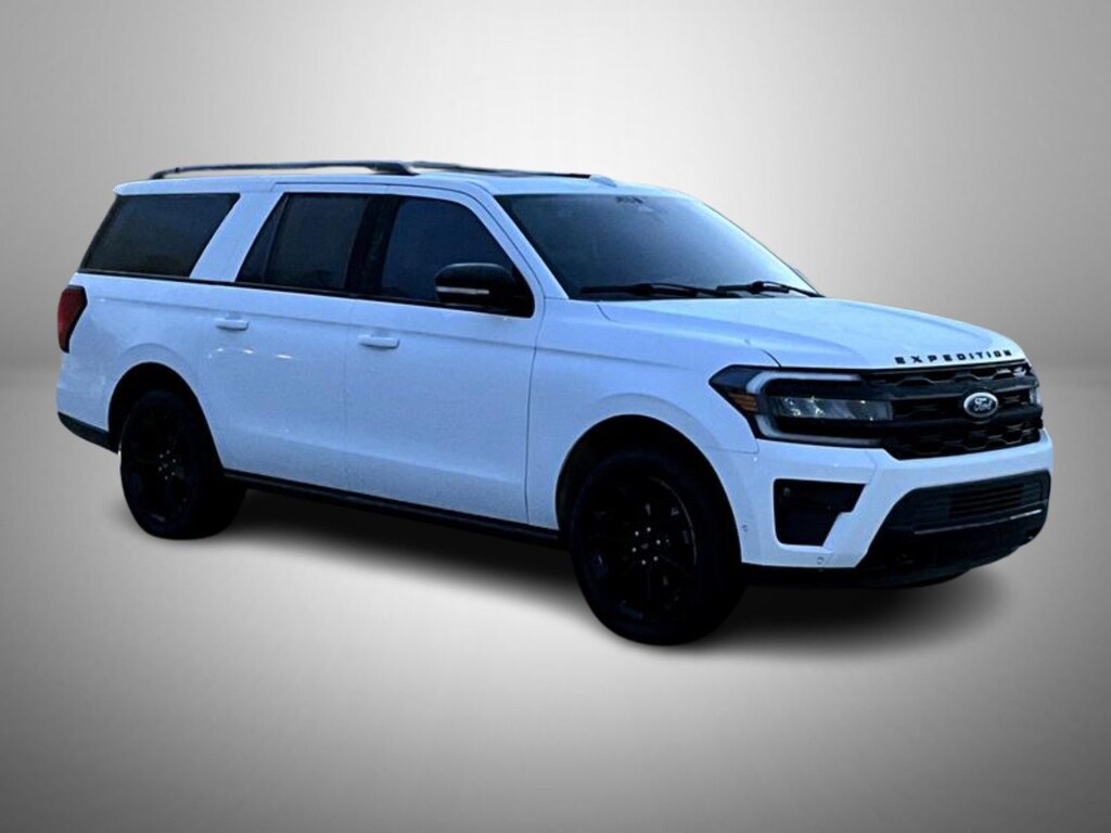 Star White Metallic Tri-Coat 2022 Ford Expedition Max Limited 4WD 10-Speed Automatic 3.5L 6 cylinder 12 Speakers, 15.5" LCD Capacitive Touchscreen, 1st & 2nd Row Floor Mats w/Logo, 360-Degree Camera w/Split View, 3rd row seats: split-bench, 4-Wheel Disc Brakes, ABS brakes, Active Park Assist 2.0, Adjustable pedals, Air Conditioning, Alloy wheels, AM/FM radio: SiriusXM with 360L, Auto High-beam Headlights, Auto-dimming door mirrors, Auto-dimming Rear-View mirror, Automatic temperature control, Black Headlamp and Fog Lamp Bezels, Black Limited Tailgate Badge, Black Roof Rack Side Rails, Body Color Door Handles, Brake assist, Bumpers: body-color, Compass, Delay-off headlights, Driver door bin, Driver vanity mirror, Dual Exhaust System, Dual front impact airbags, Dual front side impact airbags, Ebony Black Power Deployable Running Boards, Ebony Black Tailgate Applique, Ebony Black Twin Spar Grille, Electronic Stability Control, Emergency communication system: SYNC 4 911 Assist, Enhanced Active Noise Control, Equipment Group 304A Stealth Performance Package, Expedition Lettering on Hood, Exterior Parking Camera Rear, Four wheel independent suspension, Front anti-roll bar, Front Bucket Seats, Front Center Armrest, Front dual zone A/C, Front fog lights, Front reading lights, Fully automatic headlights, Garage door transmitter, Heated & Ventilated Leather Front Captain's Chairs, Heated door mirrors, Heated front seats, Heated rear seats, Heated steering wheel, Heated/Ventilated Lthr Front Captain's Chairs (A), Illuminated entry, Instrument Panel Cluster, Leather steering wheel, LED Taillamp w/Black Bezels, Low tire pressure warning, Memory seat, Navigation system: Connected Navigation, Occupant sensing airbag, Outside temperature display, Overhead airbag, Overhead console, Panic alarm, Passenger door bin, Passenger vanity mirror, Pedal memory, Power door mirrors, Power driver seat, Power Liftgate, Power moonroof, Power passenger seat, Power steering, Power windows, Power-Folding Sideview Mirrors w/Autofold, Radio data system, Radio: B&O Sound System by Bang & Olufsen, Radio: B&O Unleashed Sound System by Bang & Olufsen, Rain sensing wipers, Rear air conditioning, Rear anti-roll bar, Rear reading lights, Rear window defroster, Rear window wiper, Reclining 3rd row seat, Red Brake Calipers, Remote keyless entry, Reverse Brake Assist, Security system, SiriusXM w/360L, Speed control, Speed-sensing steering, Speed-Sensitive Wipers, Split folding rear seat, Spoiler, Sport Center Console, Sport-Tuned Suspension, Stealth Performance Edition Package, Stealth Signature Lighting Removal, Steering wheel memory, Steering wheel mounted audio controls, SYNC 4 w/Enhanced Voice Recognition, SYNC 4A w/Enhanced Voice Recognition, Tachometer, Telescoping steering wheel, Tilt steering wheel, Traction control, Trip computer, Turn signal indicator mirrors, Variably intermittent wipers, Ventilated front seats, Voltmeter, Wheels: 20" Bright Machined Aluminum, Wheels: 22" Premium Black-Painted Aluminum.