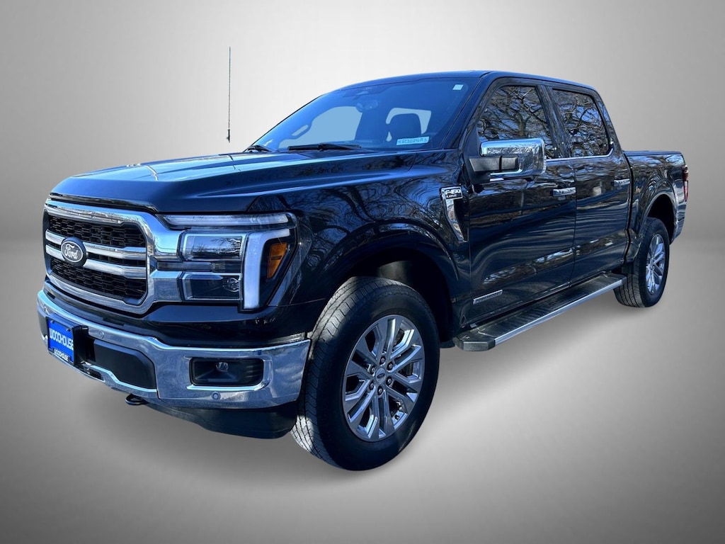 Black Metallic 2025 Ford F-150 Lariat 4WD 10-Speed Automatic 3.5L 6 cylinder 3.5L 6 cylinder, 4WD, 4-Wheel Disc Brakes, 8 Speakers, ABS brakes, ActiveX Trimmed Bucket Seats, Adjustable pedals, Air Conditioning, Alloy wheels, AM/FM radio: SiriusXM with 360L, Auto High-beam Headlights, Auto-dimming door mirrors, Auto-dimming Rear-View mirror, Automatic temperature control, Brake assist, Bumpers: chrome, Chrome wheels, Compass, Delay-off headlights, Driver door bin, Driver vanity mirror, Dual front impact airbags, Dual front side impact airbags, Electronic Stability Control, Emergency communication system: SYNC 4 911 Assist, Equipment Group 501A Mid, Front anti-roll bar, Front Bucket Seats, Front Center Armrest, Front dual zone A/C, Front fog lights, Front License Plate Bracket, Front reading lights, Front wheel independent suspension, Fully automatic headlights, Garage door transmitter, Heated door mirrors, Heated front seats, Heated steering wheel, Illuminated entry, Internet access capable: FordPass Connect 5G, Low tire pressure warning, Memory seat, Navigation system: Connected Navigation, Occupant sensing airbag, Outside temperature display, Overhead airbag, Overhead console, Panic alarm, Passenger door bin, Passenger vanity mirror, Pedal memory, Power door mirrors, Power driver seat, Power passenger seat, Power steering, Power windows, Radio data system, Radio: B&O Sound System by Bang & Olufsen, Rain sensing wipers, Rear reading lights, Rear seat center armrest, Rear step bumper, Rear window defroster, Remote keyless entry, Security system, Speed control, Split folding rear seat, Steering wheel mounted audio controls, SYNC 4 w/Enhanced Voice Recognition, Tachometer, Telescoping steering wheel, Tilt steering wheel, Tow/Haul Package, Traction control, Trip computer, Turn signal indicator mirrors, Variably intermittent wipers, Ventilated front seats, Voltmeter, Wheel Well Liner, Wheels: 18" Chrome-Like PVD, Wheels: 20" Chrome-Like PVD, 3.5L 6 cylinder, 4WD.