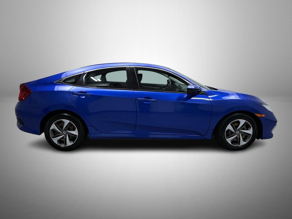 Blue 2019 Honda Civic LX FWD CVT 4 cylinder Cloth, 16" Wheels w/Full Covers, 4 Speakers, 4-Wheel Disc Brakes, ABS brakes, Air Conditioning, AM/FM radio, Auto High-beam Headlights, Automatic temperature control, Brake assist, Bumpers: body-color, Cloth Seat Trim, Delay-off headlights, Driver door bin, Driver vanity mirror, Dual front impact airbags, Dual front side impact airbags, Electronic Stability Control, Exterior Parking Camera Rear, Forward collision: Collision Mitigation Braking System (CMBS) + FCW mitigation, Four wheel independent suspension, Front anti-roll bar, Front Bucket Seats, Front Center Armrest, Front reading lights, Fully automatic headlights, Illuminated entry, Lane departure: Lane Keeping Assist System (LKAS) active, Low tire pressure warning, Occupant sensing airbag, Outside temperature display, Overhead airbag, Panic alarm, Passenger door bin, Passenger vanity mirror, Power door mirrors, Power steering, Power windows, Radio data system, Radio: 160-Watt AM/FM Audio System, Rear anti-roll bar, Rear window defroster, Remote keyless entry, Security system, Speed control, Speed-sensing steering, Steering wheel mounted audio controls, Tachometer, Telescoping steering wheel, Tilt steering wheel, Traction control, Trip computer, Cloth.