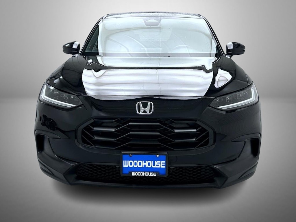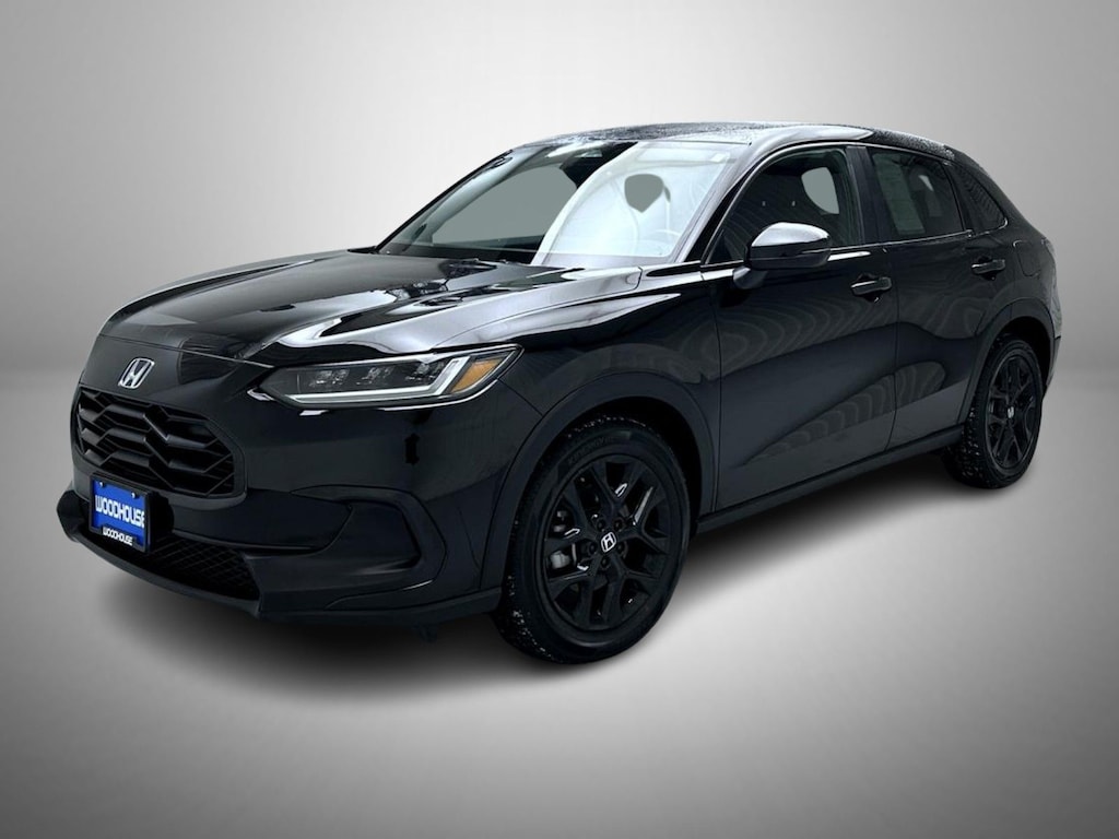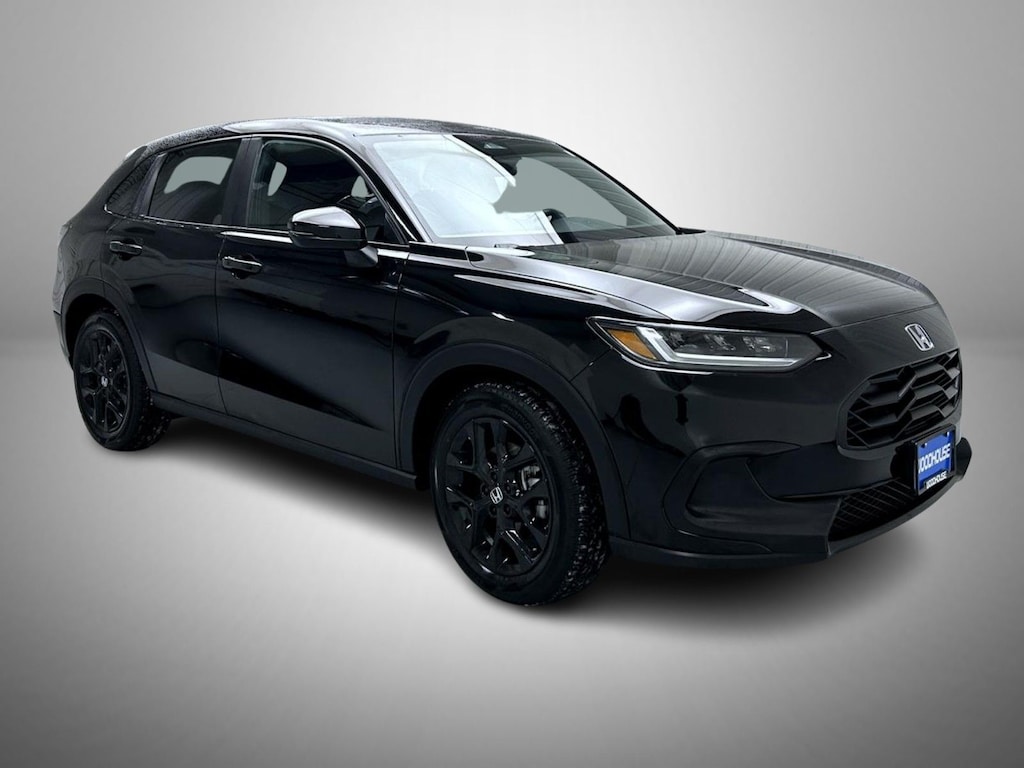 Black 2025 Honda HR-V Sport AWD CVT 4 cylinder 18" Gloss Black Alloy Wheels, 180-Watt Audio System with 6 Speakers, 4-Wheel Disc Brakes, 5.436 Axle Ratio, 6 Speakers, ABS brakes, Adaptive Cruise Control: Adaptive Cruise Control (ACC) with Low-Speed Follow, Air Conditioning, Alloy wheels, AM/FM radio, Apple CarPlay/Android Auto, Auto High-beam Headlights, Automatic temperature control, Blind Spot Information (BSI) System warning, Brake assist, Bumpers: body-color, Cloth Seat Trim, Delay-off headlights, Driver door bin, Driver vanity mirror, Dual front impact airbags, Dual front side impact airbags, Electronic Stability Control, Exterior Parking Camera Rear, Four wheel independent suspension, Front anti-roll bar, Front Bucket Seats, Front Center Armrest, Front reading lights, Fully automatic headlights, Heated door mirrors, Heated Front Bucket Seats, Heated front seats, Illuminated entry, Knee airbag, Leather Shift Knob, Leather steering wheel, Low tire pressure warning, Occupant sensing airbag, Outside temperature display, Overhead airbag, Panic alarm, Passenger door bin, Passenger vanity mirror, Power door mirrors, Power steering, Power windows, Radio data system, Rear anti-roll bar, Rear reading lights, Rear side impact airbag, Rear window defroster, Rear window wiper, Remote keyless entry, Security system, Speed control, Speed-sensing steering, Split folding rear seat, Spoiler, Steering wheel mounted audio controls, Tachometer, Telescoping steering wheel, Tilt steering wheel, Traction control, Trip computer, Turn signal indicator mirrors, Variably intermittent wipers.