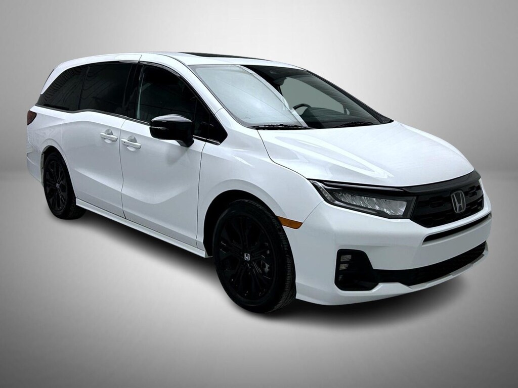 White 2025 Honda Odyssey Sport-L FWD 10-Speed Automatic 3.5L 6 cylinder 3rd row seats: split-bench, 4-Wheel Disc Brakes, 7 Speakers, ABS brakes, Adaptive Cruise Control: Adaptive Cruise Control (ACC) with Low-Speed Follow, Air Conditioning, Alloy wheels, AM/FM radio: SiriusXM, Anti-whiplash front head restraints, Apple CarPlay/Android Auto, Auto High-beam Headlights, Auto-dimming Rear-View mirror, Automatic temperature control, Blind Spot Information (BSI) System warning, Brake assist, Bumpers: body-color, Delay-off headlights, Driver door bin, Driver vanity mirror, Driver's Seat Mounted Armrest, Dual front impact airbags, Dual front side impact airbags, Electronic Stability Control, Exterior Parking Camera Rear, Four wheel independent suspension, Front anti-roll bar, Front Bucket Seats, Front dual zone A/C, Front fog lights, Front reading lights, Fully automatic headlights, Garage door transmitter: HomeLink, Heated door mirrors, Heated Front Bucket Seats, Heated front seats, Illuminated entry, Knee airbag, Lane departure: Lane Keeping Assist System (LKAS) active, Leather steering wheel, Leather Trimmed Seats, Low tire pressure warning, Memory seat, Occupant sensing airbag, Outside temperature display, Overhead airbag, Overhead console, Panic alarm, Passenger door bin, Passenger seat mounted armrest, Passenger vanity mirror, Power door mirrors, Power driver seat, Power Liftgate, Power moonroof, Power passenger seat, Power steering, Power windows, Radio data system, Radio: 160-Watt AM/FM/HD/SiriusXM Audio System, Rear air conditioning, Rear anti-roll bar, Rear reading lights, Rear seat center armrest, Rear window defroster, Rear window wiper, Reclining 3rd row seat, Remote keyless entry, Security system, Speed control, Speed-sensing steering, Speed-Sensitive Wipers, Split folding rear seat, Spoiler, Steering wheel mounted audio controls, Tachometer, Telescoping steering wheel, Tilt steering wheel, Traction control, Trip computer, Turn signal indicator mirrors, Variably intermittent wipers, Wheels: 19" Gloss Black Alloy.