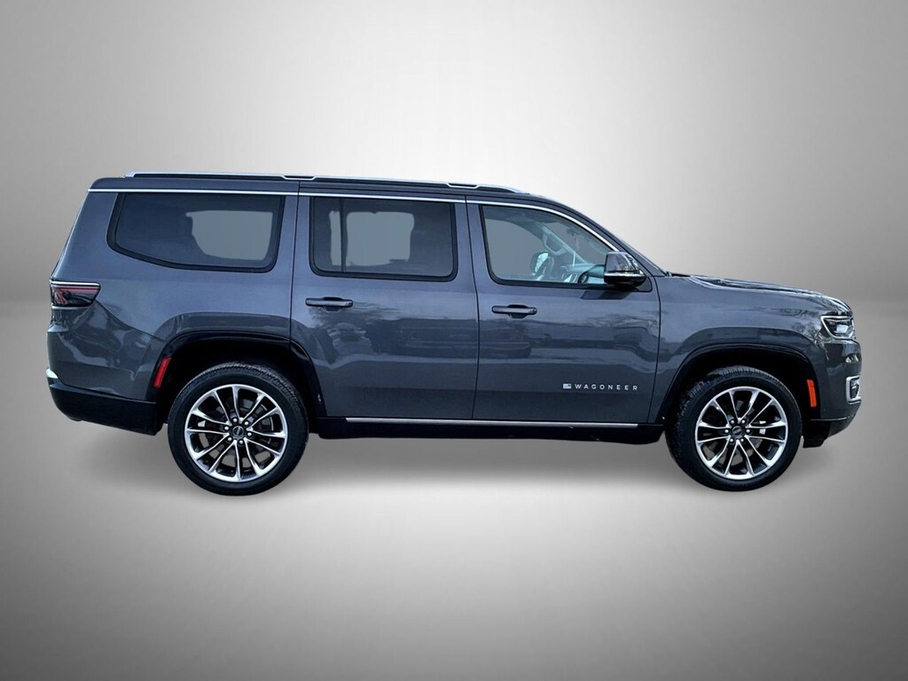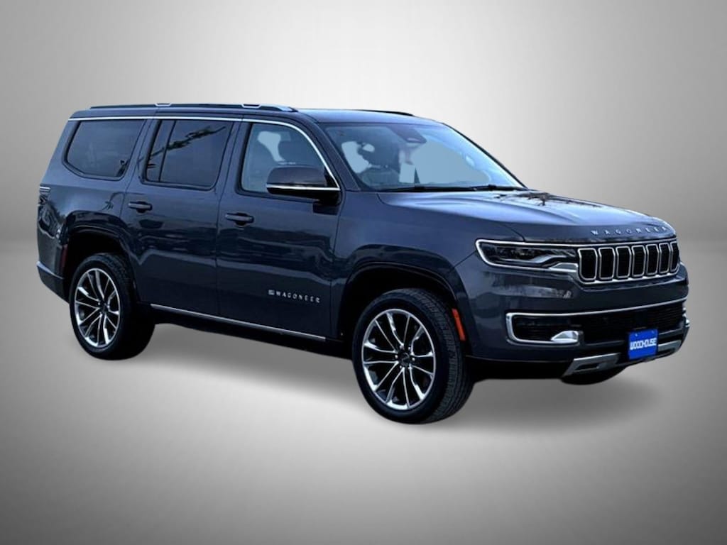 Baltic Gray Metallic Clearcoat 2022 Jeep Wagoneer Series III 4WD 8-Speed Automatic 5.7L V8 10 Speakers, 19 Speaker McIntosh Audio System, 3 Panel Sunroof, 3.21 Rear Axle Ratio, 3rd row seats: bench, 4-Wheel Disc Brakes, 7-Passenger Seating, ABS brakes, Adjustable pedals, Adjustable Roof Rail Crossbars, Air Conditioning, All-Season Floor Mats, Alloy wheels, AM/FM radio: SiriusXM with 360L, Anti-whiplash front head restraints, Audio memory, Auto High-beam Headlights, Auto-dimming door mirrors, Auto-dimming Rear-View mirror, Auto-leveling suspension, Automatic temperature control, Brake assist, Bumpers: body-color, Cargo Cover, Cargo Tray, Compass, Delay-off headlights, Driver door bin, Driver vanity mirror, Driver's Seat Mounted Armrest, Dual front impact airbags, Dual front side impact airbags, Electronic Stability Control, Exterior Parking Camera Rear, Flexible Seating Group, Floor Console w/Cupholder, Four wheel independent suspension, Front anti-roll bar, Front Bucket Seats, Front Center Armrest w/Storage, Front dual zone A/C, Front fog lights, Front Passenger Interactive Display, Front reading lights, Fully automatic headlights, Garage door transmitter, Genuine wood console insert, Genuine wood dashboard insert, Genuine wood door panel insert, Heads-Up Display, Heated door mirrors, Heated front seats, Heated rear seats, Heated steering wheel, Illuminated entry, Knee airbag, Leather Trimmed Bucket Seats, Low tire pressure warning, Luxury Front & Rear Floor Mats, Memory seat, MOPAR Interior Protection Package, Navigation System, Normal Duty Suspension, Occupant sensing airbag, Outside temperature display, Overhead airbag, Overhead console, Panic alarm, Passenger door bin, Passenger seat mounted armrest, Passenger vanity mirror, Pedal memory, Power adjustable front head restraints, Power Deployable Running Boards, Power door mirrors, Power driver seat, Power Liftgate, Power passenger seat, Power steering, Power Tip/Slide Recline 2nd Row Buckets, Power windows, Premium Group I (DISC), Quick Order Package 22N, Radio data system, Radio: Uconnect 5 Nav w/10.1" Display, Rain sensing wipers, Rear air conditioning, Rear anti-roll bar, Rear dual zone A/C, Rear reading lights, Rear seat center armrest, Rear window defroster, Rear window wiper, Reclining 3rd row seat, Remote keyless entry, Reversible Carpet/Vinyl Cargo Mat, Security system, Speed control, Speed-sensing steering, Speed-Sensitive Wipers, Split folding rear seat, Steering wheel memory, Steering wheel mounted audio controls, Tachometer, Telescoping steering wheel, Tilt steering wheel, Traction control, Trip computer, Turn signal indicator mirrors, Variably intermittent wipers, Ventilated front seats, Voltmeter, Wheels: 20" x 9.0" Premium 2 Aluminum, Wheels: 22" x 9.0" Premium 3 Aluminum (DISC).