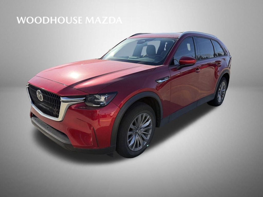 Certified. Soul Red Crystal Metallic 2024 Mazda CX-90 PHEV Preferred AWD 8-Speed Automatic Gas/Electric I-4 2.5 L/152 Mazda Certified, 2nd-Row Captain's Chairs, 3rd row seats: bench, 4-Wheel Disc Brakes, 4.444 Axle Ratio, 8 Speakers, ABS brakes, Air Conditioning, Alloy wheels, AM/FM radio, AppLink/Apple CarPlay and Android Auto, Auto High-beam Headlights, Automatic temperature control, Brake assist, Bumpers: body-color, Compass, Delay-off headlights, Driver door bin, Driver vanity mirror, Dual front impact airbags, Dual front side impact airbags, E911 Automatic Emergency Notification, Electronic Stability Control, Emergency communication system: MAZDA CONNECT, Exterior Parking Camera Rear, Four wheel independent suspension, Front anti-roll bar, Front Bucket Seats, Front Center Armrest w/Storage, Front dual zone A/C, Front reading lights, Fully automatic headlights, Heated door mirrors, Heated Front Bucket Seats, Heated front seats, Illuminated entry, Infotainment System Voice Command, Knee airbag, Leather Seat Trim, Leather Shift Knob, Leather steering wheel, Low tire pressure warning, Mazda Connected Services, Occupant sensing airbag, Outside temperature display, Overhead airbag, Overhead console, Pandora Internet Radio Integration, Panic alarm, Passenger door bin, Passenger vanity mirror, Power door mirrors, Power driver seat, Power Liftgate, Power moonroof, Power passenger seat, Power steering, Power windows, Radio Broadcast Data System Program Information, Radio data system, Radio: AM/FM w/HD/8-Speakers, Rain sensing wipers, Rear air conditioning, Rear anti-roll bar, Rear reading lights, Rear seat center armrest, Rear window defroster, Rear window wiper, Remote keyless entry, SMS Text Msg Audio Delivery & Reply, Soul Red Crystal Metallic Paint Charge, Speed control, Speed-sensing steering, Split folding rear seat, Spoiler, Steering wheel mounted audio controls, Tachometer, Telescoping steering wheel, Tilt steering wheel, Traction control, Trip computer, Turn signal indicator mirrors, Variably intermittent wipers, Wheels: 19" x 8.5J Aluminum Alloy.