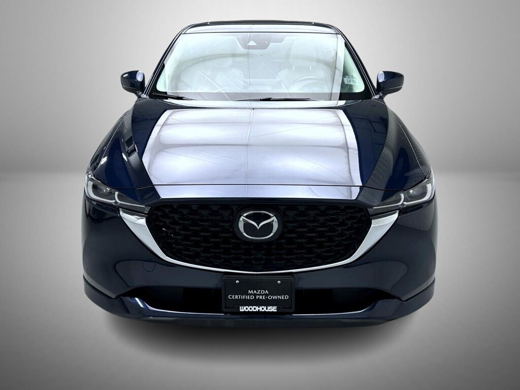 Certified. Deep Crystal Blue Mica 2025 Mazda CX-5 2.5 S Preferred Package AWD 6-Speed Automatic 4 cylinder Mazda Certified, 4-Wheel Disc Brakes, 6 Speakers, ABS brakes, Air Conditioning, Alloy wheels, AM/FM radio, AppLink/Apple CarPlay and Android Auto, Auto High-beam Headlights, Auto-dimming Rear-View mirror, Automatic temperature control, Brake assist, Bumpers: body-color, Delay-off headlights, Driver door bin, Driver vanity mirror, Dual front impact airbags, Dual front side impact airbags, E911 Automatic Emergency Notification, Electronic Stability Control, Emergency communication system: MAZDA CONNECT, Exterior Parking Camera Rear, Four wheel independent suspension, Front anti-roll bar, Front Bucket Seats, Front Center Armrest w/Storage, Front dual zone A/C, Front reading lights, Fully automatic headlights, Garage door transmitter: HomeLink, Heated Front Bucket Seats, Heated front seats, Illuminated entry, Infotainment System Voice Command, Leather Seat Trim, Leather Shift Knob, Leather steering wheel, Low tire pressure warning, Memory seat, Multifunction Commander Control, Occupant sensing airbag, Outside temperature display, Overhead airbag, Overhead console, Pandora, Panic alarm, Passenger door bin, Passenger vanity mirror, Power door mirrors, Power driver seat, Power Liftgate, Power moonroof, Power passenger seat, Power steering, Power windows, Radio Broadcast Data System Program Information, Radio data system, Radio: AM/FM/HD Audio System, Rain sensing wipers, Rear anti-roll bar, Rear reading lights, Rear seat center armrest, Rear window defroster, Rear window wiper, Remote keyless entry, SMS Text Msg Audio Delivery & Reply, Speed control, Speed-sensing steering, Split folding rear seat, Spoiler, Steering wheel mounted audio controls, Tachometer, Telescoping steering wheel, Tilt steering wheel, Traction control, Trip computer, Turn signal indicator mirrors, Variably intermittent wipers, Wheels: 17" x 7J Aluminum Alloy.