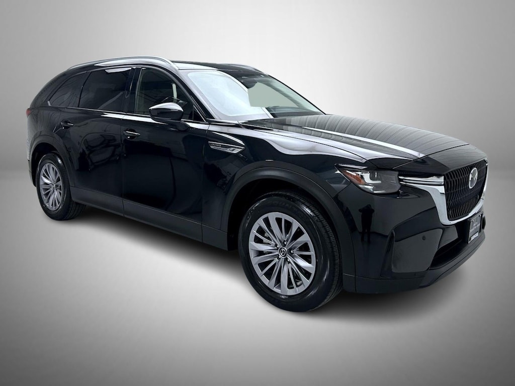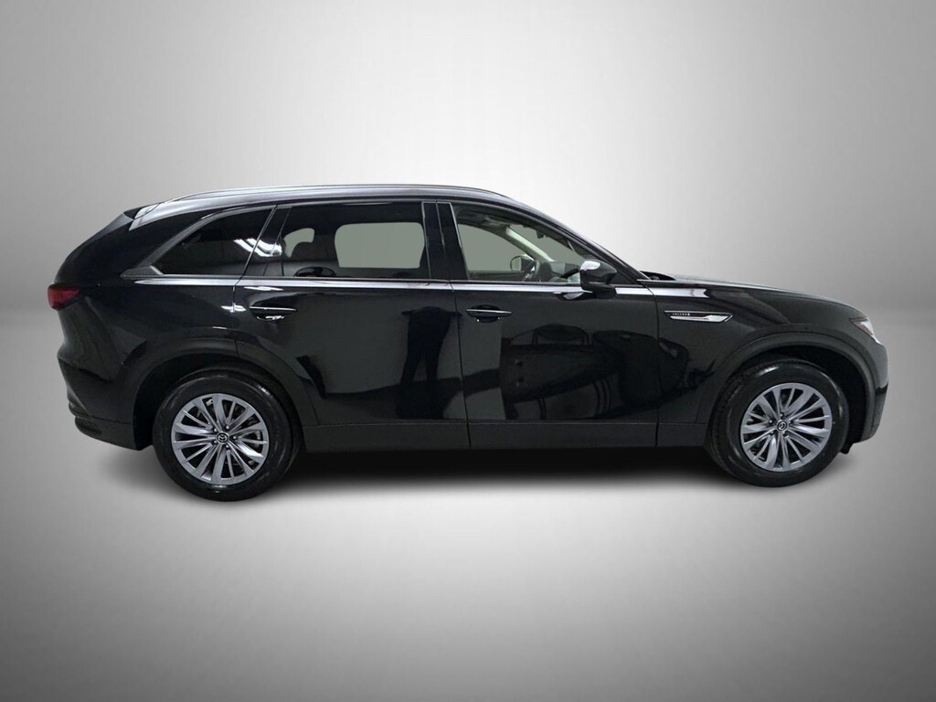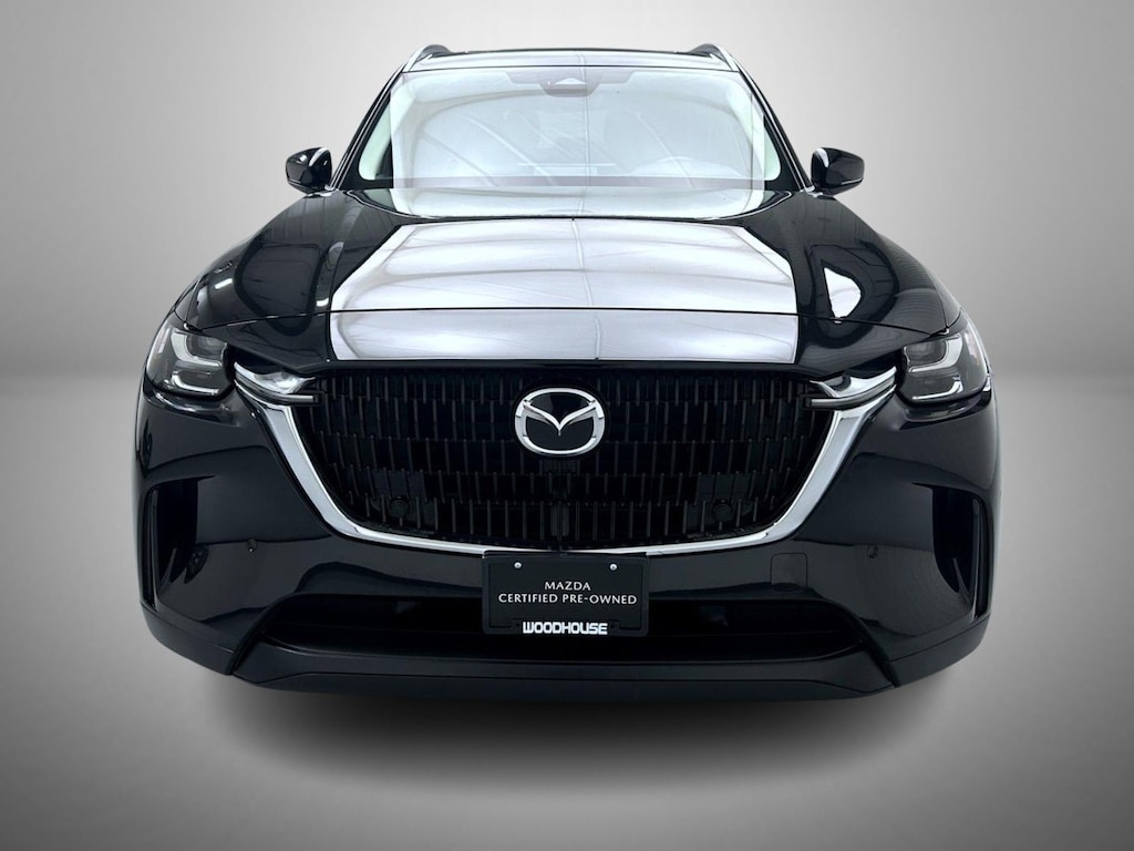 Certified. Jet Black Mica 2025 Mazda CX-90 3.3 Turbo Preferred AWD 8-Speed Automatic 3.3L 6 cylinder Mazda Certified, 3rd row seats: bench, 4-Wheel Disc Brakes, 8 Speakers, ABS brakes, Air Conditioning, Alloy wheels, AM/FM radio, Auto High-beam Headlights, Automatic temperature control, Brake assist, Bumpers: body-color, Compass, Delay-off headlights, Driver door bin, Driver vanity mirror, Dual front impact airbags, Dual front side impact airbags, E911 Automatic Emergency Notification, Electronic Stability Control, Emergency communication system: MAZDA CONNECT, Exterior Parking Camera Rear, Four wheel independent suspension, Front anti-roll bar, Front Bucket Seats, Front Center Armrest w/Storage, Front dual zone A/C, Front reading lights, Fully automatic headlights, Heated door mirrors, Heated Front Bucket Seats, Heated front seats, Illuminated entry, Infotainment System Voice Command, Knee airbag, Leather Seat Trim, Leather Shift Knob, Leather steering wheel, Low tire pressure warning, Mazda Connected Services, Occupant sensing airbag, Outside temperature display, Overhead airbag, Overhead console, Pandora Internet Radio Integration, Panic alarm, Passenger door bin, Passenger vanity mirror, Power door mirrors, Power driver seat, Power Liftgate, Power moonroof, Power passenger seat, Power steering, Power windows, Radio Broadcast Data System Program Information, Radio data system, Radio: AM/FM w/HD/8-Speaker Sound System, Rain sensing wipers, Rear air conditioning, Rear anti-roll bar, Rear reading lights, Rear seat center armrest, Rear window defroster, Rear window wiper, Remote keyless entry, SMS Text Msg Audio Delivery & Reply, Speed control, Speed-sensing steering, Split folding rear seat, Spoiler, Steering wheel mounted audio controls, Tachometer, Telescoping steering wheel, Tilt steering wheel, Traction control, Trip computer, Turn signal indicator mirrors, Variably intermittent wipers, Wheels: 19" x 8.5J Aluminum Alloy.
