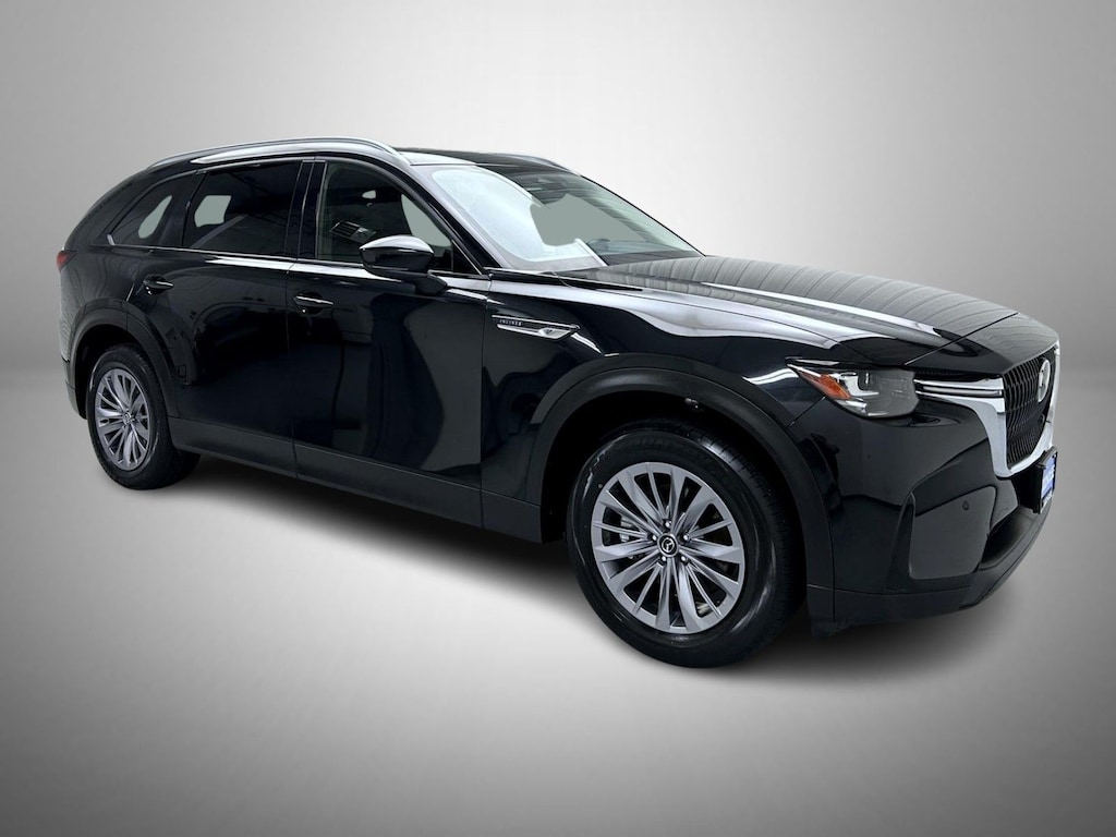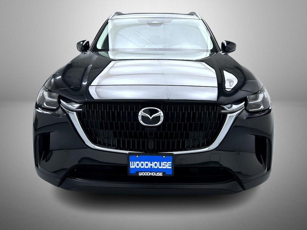 Jet Black Mica 2025 Mazda CX-90 3.3 Turbo Preferred AWD 8-Speed Automatic 3.3L 6 cylinder 3rd row seats: bench, 4-Wheel Disc Brakes, 8 Speakers, ABS brakes, Air Conditioning, Alloy wheels, AM/FM radio, Auto High-beam Headlights, Automatic temperature control, Brake assist, Bumpers: body-color, Compass, Delay-off headlights, Driver door bin, Driver vanity mirror, Dual front impact airbags, Dual front side impact airbags, E911 Automatic Emergency Notification, Electronic Stability Control, Emergency communication system: MAZDA CONNECT, Exterior Parking Camera Rear, Four wheel independent suspension, Front anti-roll bar, Front Bucket Seats, Front Center Armrest w/Storage, Front dual zone A/C, Front reading lights, Fully automatic headlights, Heated door mirrors, Heated Front Bucket Seats, Heated front seats, Illuminated entry, Infotainment System Voice Command, Knee airbag, Leather Seat Trim, Leather Shift Knob, Leather steering wheel, Low tire pressure warning, Mazda Connected Services, Occupant sensing airbag, Outside temperature display, Overhead airbag, Overhead console, Pandora Internet Radio Integration, Panic alarm, Passenger door bin, Passenger vanity mirror, Power door mirrors, Power driver seat, Power Liftgate, Power moonroof, Power passenger seat, Power steering, Power windows, Radio Broadcast Data System Program Information, Radio data system, Radio: AM/FM w/HD/8-Speaker Sound System, Rain sensing wipers, Rear air conditioning, Rear anti-roll bar, Rear reading lights, Rear seat center armrest, Rear window defroster, Rear window wiper, Remote keyless entry, SMS Text Msg Audio Delivery & Reply, Speed control, Speed-sensing steering, Split folding rear seat, Spoiler, Steering wheel mounted audio controls, Tachometer, Telescoping steering wheel, Tilt steering wheel, Traction control, Trip computer, Turn signal indicator mirrors, Variably intermittent wipers, Wheels: 19" x 8.5J Aluminum Alloy.