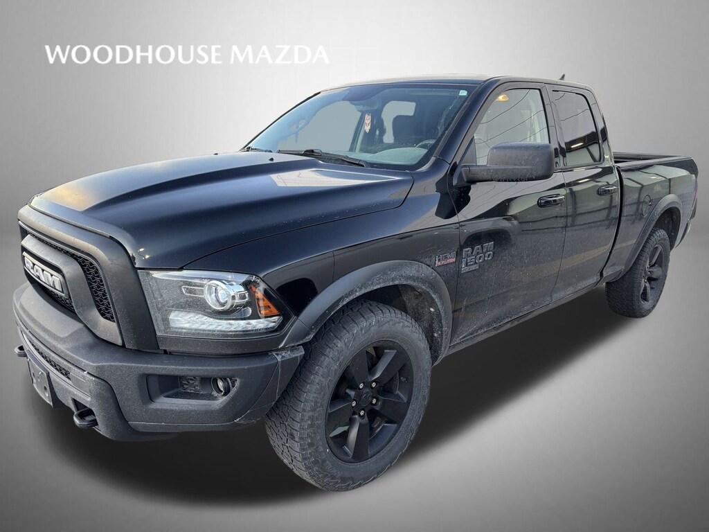 Diamond Black Crystal Pearlcoat 2019 Ram 1500 Classic Warlock 4WD 8-Speed Automatic 5.7L V8 1-Yr SiriusXM Guardian Trial, 17" x 7" Aluminum Wheels, 3.21 Rear Axle Ratio, 4-Wheel Disc Brakes, 4x4 Decal, 4x4 Flat Black Badge, 6 Speakers, 8.4" Touchscreen Display, ABS brakes, Active Grille Shutters, Air Conditioning, Air Conditioning ATC w/Dual Zone Control, Alloy wheels, AM/FM radio: SiriusXM, Apple CarPlay, Bi-Function Halogen Projector Headlamps, Black Exterior Truck Badging, Black Grille w/RAM Lettering, Black Headlamp Bezels, Black Headlamp Filler Panel, Black Powder Coated Front Bumper, Black Powder Coated Rear Bumper, Black RAM Head Tailgate Badge, Black Wheel Flares, Brake assist, Bumpers: chrome, Charge Only Remote USB Port, Cloth 40/20/40 Bench Seat, Cluster 7.0" TFT Color Display, Compass, Delay-off headlights, Driver door bin, Dual front impact airbags, Dual front side impact airbags, Dual Rear Exhaust w/Bright Tips, Electronic Shift, Electronic Stability Control, Electronics Group, Front anti-roll bar, Front Armrest w/3 Cupholders, Front Center Armrest w/Storage, Front LED Fog Lamps, Front reading lights, Front wheel independent suspension, Front Wheel Well Liners, Fully automatic headlights, Google Android Auto, GPS Antenna Input, HD Radio, Heated door mirrors, Hood Decal, Humidity Sensor, Illuminated entry, Integrated Voice Command w/Bluetooth, Low tire pressure warning, Media Hub (2 USB, AUX), Occupant sensing airbag, Outside temperature display, Overhead airbag, Overhead console, Panic alarm, ParkSense Rear Park Assist System, ParkView Rear Back-Up Camera, Passenger door bin, Passenger vanity mirror, Power door mirrors, Power steering, Power windows, Quick Order Package 27F Warlock, Radio data system, Radio: Uconnect 3 w/5" Display, Radio: Uconnect 4C w/8.4" Display, Rear anti-roll bar, Rear Extra HD Shock Absorbers, Rear Floor Mats, Rear step bumper, Remote keyless entry, Remote Start & Security Alarm Group, Remote Start System, Security Alarm, Semi-Gloss Black Hub, SiriusXM Satellite Radio, Speed control, Sport Tail Lamps, Tachometer, Tilt steering wheel, Tip Start, Tow Hooks, Traction control, Trip computer, USB Host Flip, Variably intermittent wipers, Voltmeter, Wheels: 20" x 8" Semi-Gloss Black Aluminum.