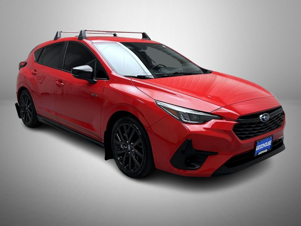Pure Red 2024 Subaru Impreza 2.5RS AWD CVT Lineartronic 2.5L DOHC 4-Wheel Disc Brakes, 6 Speakers, ABS brakes, Air Conditioning, All-Weather Floor Liners, Alloy wheels, AM/FM radio: SiriusXM, Anti-whiplash front head restraints, Auto High-beam Headlights, Auto-Dimming Exterior Mirror w/Approach Light, Auto-Dimming Mirror w/Compass & HomeLink, Automatic temperature control, Brake assist, Bumpers: body-color, Cargo Tray, Driver door bin, Driver vanity mirror, Dual front impact airbags, Dual front side impact airbags, Electronic Stability Control, Emergency communication system: STARLINK Safety and Security (Subscription Required), Exterior Parking Camera Rear, Fixed Crossbar Set, Four wheel independent suspension, Front anti-roll bar, Front Bucket Seats, Front Center Armrest, Front dual zone A/C, Front fog lights, Front reading lights, Fully automatic headlights, Heated door mirrors, Heated Front Bucket Seats, Heated front seats, Illuminated entry, Knee airbag, Leather Shift Knob, Low tire pressure warning, Occupant sensing airbag, Outside temperature display, Overhead airbag, Overhead console, Panic alarm, Passenger door bin, Passenger vanity mirror, Popular Package #1, Power door mirrors, Power steering, Power windows, Radio data system, Radio: Subaru STARLINK 11.6" Multimedia Plus Sys, Rear anti-roll bar, Rear Bumper Applique, Rear seat center armrest, Rear window defroster, Rear window wiper, Remote keyless entry, RS Cloth Upholstery, Security system, Speed control, Speed-sensing steering, Split folding rear seat, Spoiler, Standard Model, STARLINK/Apple CarPlay/Android Auto, Steering wheel mounted audio controls, Tachometer, Telescoping steering wheel, Tilt steering wheel, Traction control, Trip computer, Turn signal indicator mirrors, Variably intermittent wipers, Wheels: 18" x 7.0" Dark Gray Aluminum-Alloy.