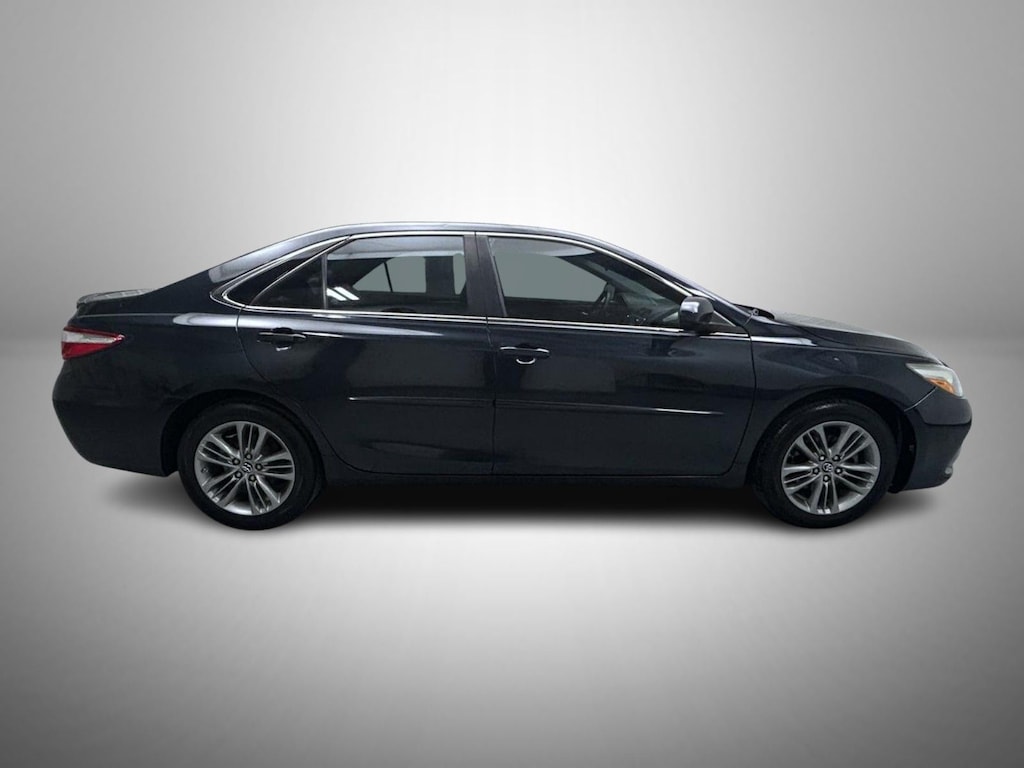 Black 2017 Toyota Camry SE FWD 6-Speed Automatic 4 cylinder Se Cloth, 4-Wheel Disc Brakes, 6 Speakers, 7.0J x 17" Alloy Wheels, ABS brakes, Air Conditioning, Alloy wheels, AM/FM radio, Brake assist, Bumpers: body-color, CD player, Delay-off headlights, Driver door bin, Driver vanity mirror, Dual front impact airbags, Dual front side impact airbags, Electronic Stability Control, Exterior Parking Camera Rear, Fabric Seat Trim, Four wheel independent suspension, Front anti-roll bar, Front Bucket Seats, Front Center Armrest, Front reading lights, Fully automatic headlights, Heated door mirrors, Illuminated entry, Knee airbag, Leather steering wheel, Low tire pressure warning, Occupant sensing airbag, Outside temperature display, Overhead airbag, Overhead console, Panic alarm, Passenger door bin, Passenger vanity mirror, Power door mirrors, Power driver seat, Power steering, Power windows, Radio: Entune Audio, Rear anti-roll bar, Rear seat center armrest, Rear side impact airbag, Rear window defroster, Remote keyless entry, Speed control, Speed-sensing steering, Split folding rear seat, Spoiler, Sport steering wheel, Steering wheel mounted audio controls, Tachometer, Telescoping steering wheel, Tilt steering wheel, Traction control, Trip computer, Variably intermittent wipers, Se Cloth.