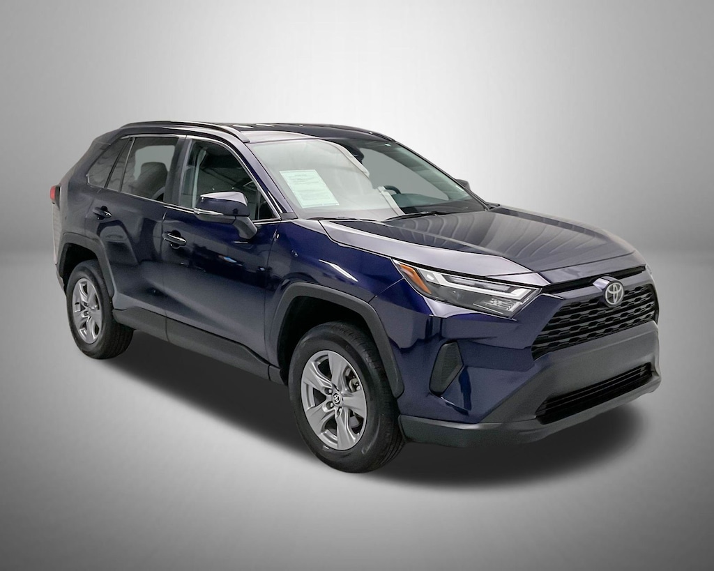 Blue 2024 Toyota RAV4 XLE AWD 8-Speed Automatic 4 cylinder AWD, Cloth, 4-Wheel Disc Brakes, 6 Speakers, ABS brakes, Air Conditioning, Alloy wheels, AM/FM radio: SiriusXM, Auto High-beam Headlights, Automatic temperature control, Axle Ratio: 3.177, Brake assist, Bumpers: body-color, Delay-off headlights, Driver door bin, Driver vanity mirror, Dual front impact airbags, Dual front side impact airbags, Electronic Stability Control, Emergency communication system: Safety Connect (10-year trial), Exterior Parking Camera Rear, Fabric Seat Trim, Four wheel independent suspension, Front anti-roll bar, Front Bucket Seats, Front Center Armrest, Front dual zone A/C, Front reading lights, Fully automatic headlights, Heated door mirrors, Illuminated entry, Knee airbag, Low tire pressure warning, Occupant sensing airbag, Outside temperature display, Overhead airbag, Overhead console, Panic alarm, Passenger door bin, Passenger vanity mirror, Power door mirrors, Power driver seat, Power steering, Power windows, Radio data system, Radio: AM/FM/XM Audio System, Rear anti-roll bar, Rear seat center armrest, Rear window defroster, Rear window wiper, Remote keyless entry, Speed control, Speed-sensing steering, Split folding rear seat, Spoiler, Steering wheel mounted audio controls, Tachometer, Telescoping steering wheel, Tilt steering wheel, Traction control, Trip computer, Turn signal indicator mirrors, Variably intermittent wipers, Wheels: 17" 5-Spoke Silver Alloy, AWD, Cloth.