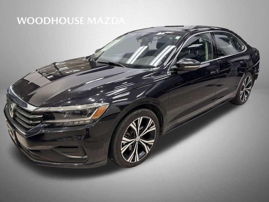 Black 2021 Volkswagen Passat 2.0T SE FWD 6-Speed Automatic with Tiptronic Intercooled Turbo Regular Unleaded I-4 2.0 L/121 Se Artificial Leather, 4-Wheel Disc Brakes, 6 Speakers, ABS brakes, Active Blind Spot Monitor, Air Conditioning, Alloy wheels, AM/FM radio: SiriusXM, Auto-dimming Rear-View mirror, Automatic temperature control, Brake assist, Bumpers: body-color, Delay-off headlights, Driver door bin, Driver vanity mirror, Dual front impact airbags, Dual front side impact airbags, Electronic Stability Control, Emergency communication system: VW Car-Net services (capabilities require enrollment or subscription), Exterior Parking Camera Rear, Four wheel independent suspension, Front anti-roll bar, Front Bucket Seats, Front Center Armrest, Front dual zone A/C, Front reading lights, Fully automatic headlights, Heated door mirrors, Heated Front Comfort Seats, Heated front seats, Illuminated entry, Leather Shift Knob, Leather steering wheel, Low tire pressure warning, Occupant sensing airbag, Outside temperature display, Overhead airbag, Overhead console, Panic alarm, Passenger door bin, Passenger vanity mirror, Perforated V-Tex Leatherette Seating Surfaces, Power door mirrors, Power driver seat, Power moonroof, Power steering, Power windows, Radio data system, Radio: Composition Media w/Touchscreen, Rain sensing wipers, Rear anti-roll bar, Rear reading lights, Rear seat center armrest, Rear window defroster, Remote keyless entry, Speed control, Speed-sensing steering, Split folding rear seat, Steering wheel mounted audio controls, Tachometer, Telescoping steering wheel, Tilt steering wheel, Traction control, Trip computer, Turn signal indicator mirrors, Variably intermittent wipers, Wheels: 18" x 8J 5-Spoke 2-Tone Machined Alloy, Se Artificial Leather.